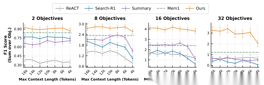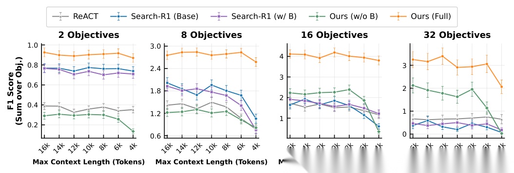 | Method | Context | BrowseComp-Plus Avg | 2-Obj | 8-Obj | 16-Obj | 32-Obj |