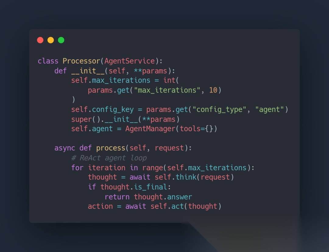 从代码可以看出,Agent通过迭代的方式工作:思考(Think)->行动(Act)->观察(Observe)。这种设计让Agent能够处理复杂的多步骤任务,而不是简单的一次性问答。