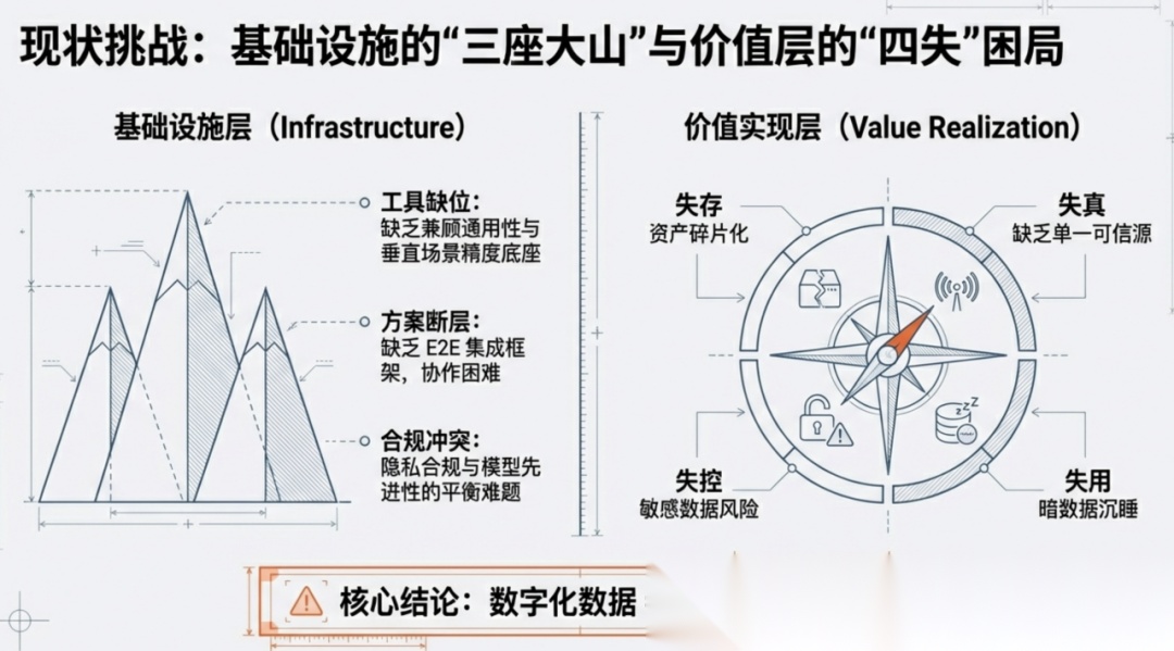 越来越多的企业开始意识到数据的重要性。同时意识到,企业想保持长远的发展,还需要协调组织协作、利用现有的数据沉淀经验知识、累积数据资产。实际上,尽管企业坐拥海量数据资产,但在大模型(LLM)从“技术验证”迈向“深度业务落地”的过程中,数据工程的基础设施能力仍是最大的掣肘。企业面临着数据供给侧能力不足与需求侧应用复杂的双重挤压,导致“数据多”难以转化为“价值大”。