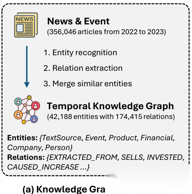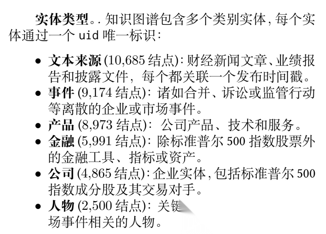关系类型:包括投资、合作、因果、法律等12种关系,共174,415条时序三元组。所有事实带时间窗口,仅使用≤t的信息;
