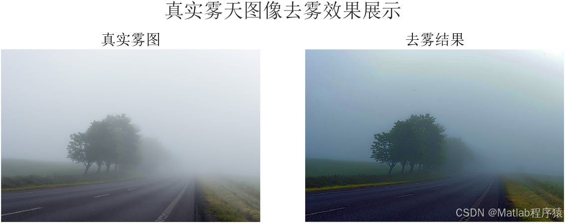 因此,从工程实现角度出发,采用“物理模型约束 + 多先验融合 + 后处理校正”的思路具有较强现实意义。它既能保持算法流程的可解释性,又能够通过模块化方式缓解单一先验的局限,更适合在 MATLAB 环境中构建结构清晰、结果直观且便于分析的图像去雾系统。