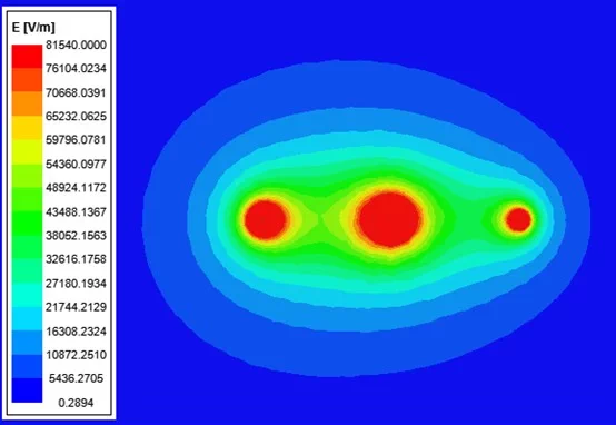 Maxwell电场仿真 高压输电线地面电场仿真,下图分别为模型电场强度分布云图、各时刻沿地面电场强度分布,地面各点最大场强