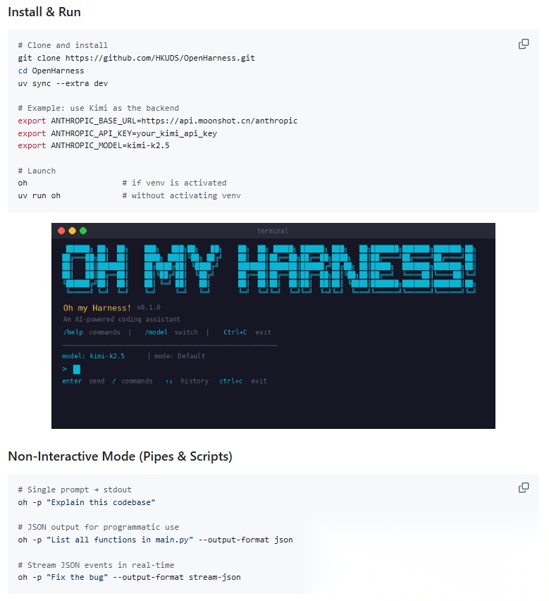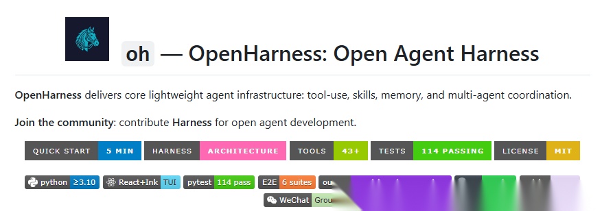 对于研究社区而言,这种开放性非常重要。因为很多实验并不需要从零写一个 agent 系统,而是需要一个可插拔、可替换、可观察的实验底座。OpenHarness 正好在这一层面提供了比较清晰的入口。