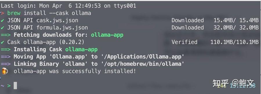 还是打开终端,输入下面这行命令,回车等待安装: brew install --cask ollama