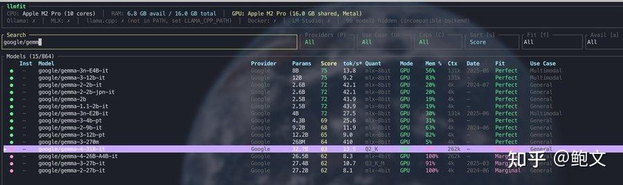 - 会弹出交互界面,搜索你感兴趣的模型(google/gemma4 或 qwen/qwen3.5),看Fit一栏就好:Perfect、Good都能流畅跑,Marginal勉强能用,Too Tight直接放弃,别给自己找罪受~