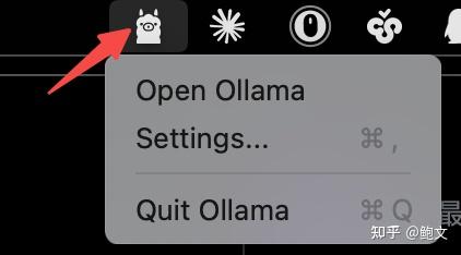 小误区:菜单栏的🦙图标,是Ollama的服务管理入口,只能看运行状态、开关服务,不是聊天界面哦!