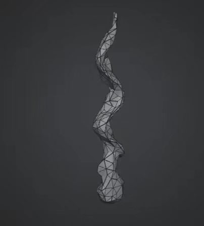 在菜单中选择:创建 → 变形器 → 扭曲,并将扭曲变形器作为模型的子对象。设置扭曲的角度和强度,让模型沿着竖直轴产生螺旋扭转,调整偏移,控制扭曲主要集中在上半部分,让火焰更有向上飘的动感,使模型从笔直的锥形,变成带有自然螺旋弯曲的形态,更贴近真实火焰摇曳、旋转升腾的效果。