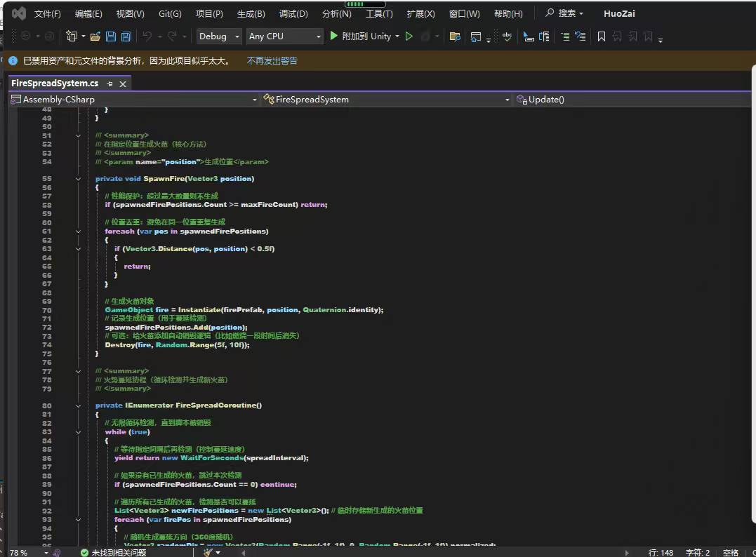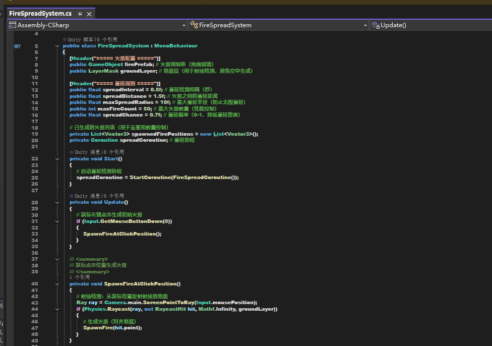 二、核心脚本 FireSpreadSystem.cs 详细实现