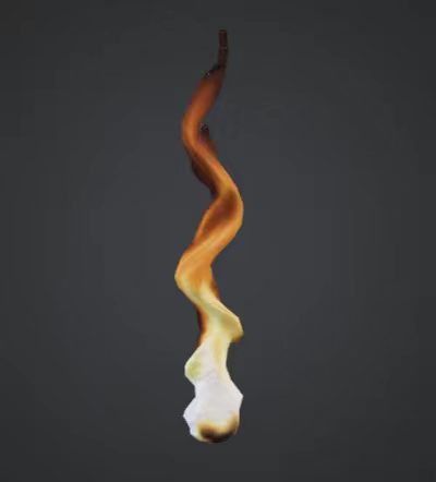 为模型新建材质,设置渐变色彩:底部偏亮、中部橙黄、顶部偏深,模拟火焰/热源的发光与燃烧质感。保留细分曲面效果,模型表面圆润光滑、无棱角,整体形态流畅自然。最终完成一个类似火焰、热源、红外火源的完整3D模型。