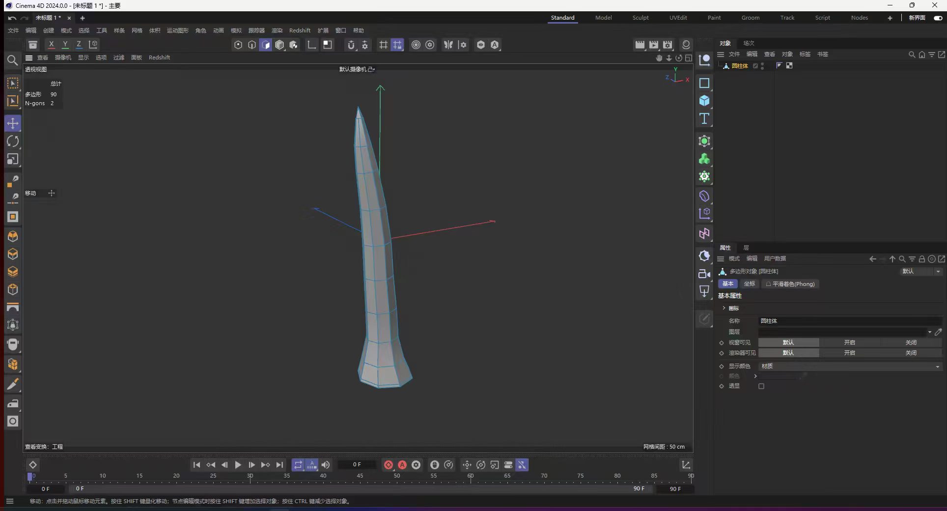 场景中就会生成一个默认的圆柱模型