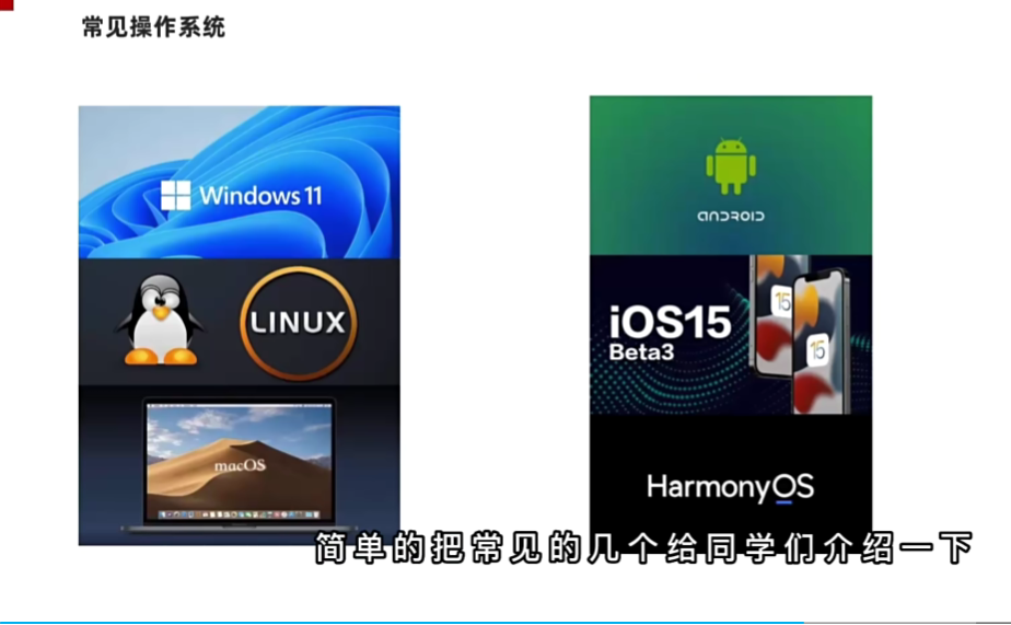首先,我们想要知道什么是操作系统,就必然需要了解计算机由啥组成,一台计算机是由硬件和软件组成,硬件由CPU、网卡、鼠标等。软件是由操作系统组成。软件是用户和计算机硬件之间接口和桥梁,用户通过软件与计算机进行交流。而操作系统就是软件一类。我们平时操作系统有很多,如Windows11,Linux、macOS,这些都是电脑端的操作系统。安卓、IOS、HarmonyOS,手机端的。图