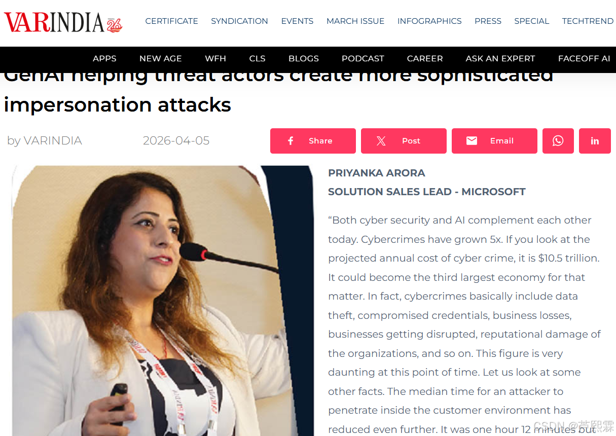 微软安全团队在 2026 年 WIITF 会议披露,网络犯罪规模增长 5 倍,年化成本预计达 10.5 万亿美元,威胁行为体利用 GenAI 将渗透时间压缩至 32 分钟内,密码攻击与冒充诈骗呈爆发式增长。与此同时,企业普遍存在安全工具割裂、安全人员短缺、防御体系碎片化等问题,告警疲劳与响应滞后导致威胁长期潜伏。