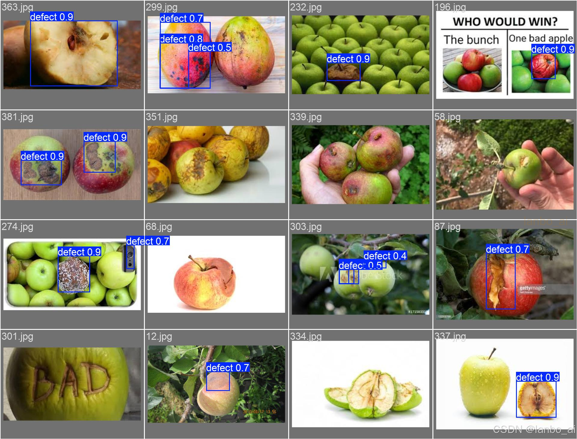 基于yolov8和faster-rcnn的苹果缺陷检测系统在pytorch框架下实现的,这是一个完整的项目,包括代码,数据集,训练好的模型权重,模型训练记录,GUI界面和各种模型指标(精确率、召回率等)等。