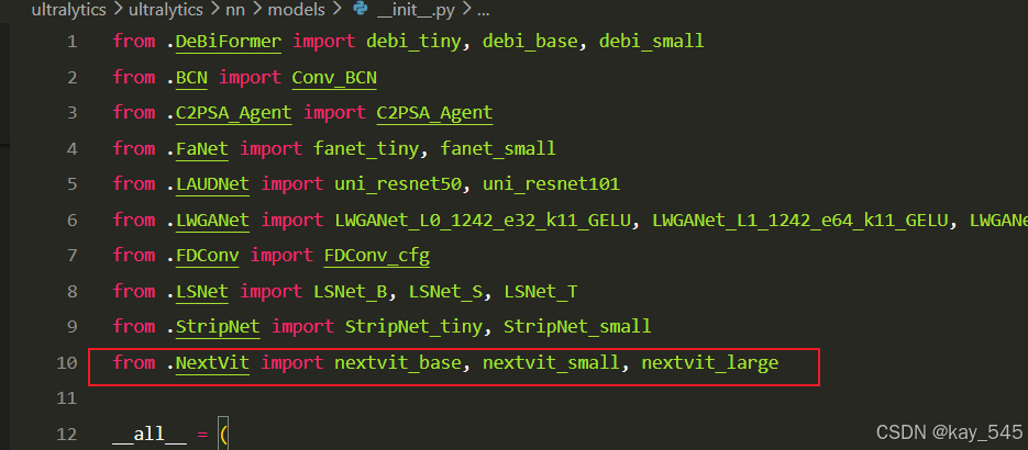 关键步骤一:在ultralytics\ultralytics\nn\modules下面新建文件夹models,在文件夹下新建NextViT.py,粘贴下面代码
