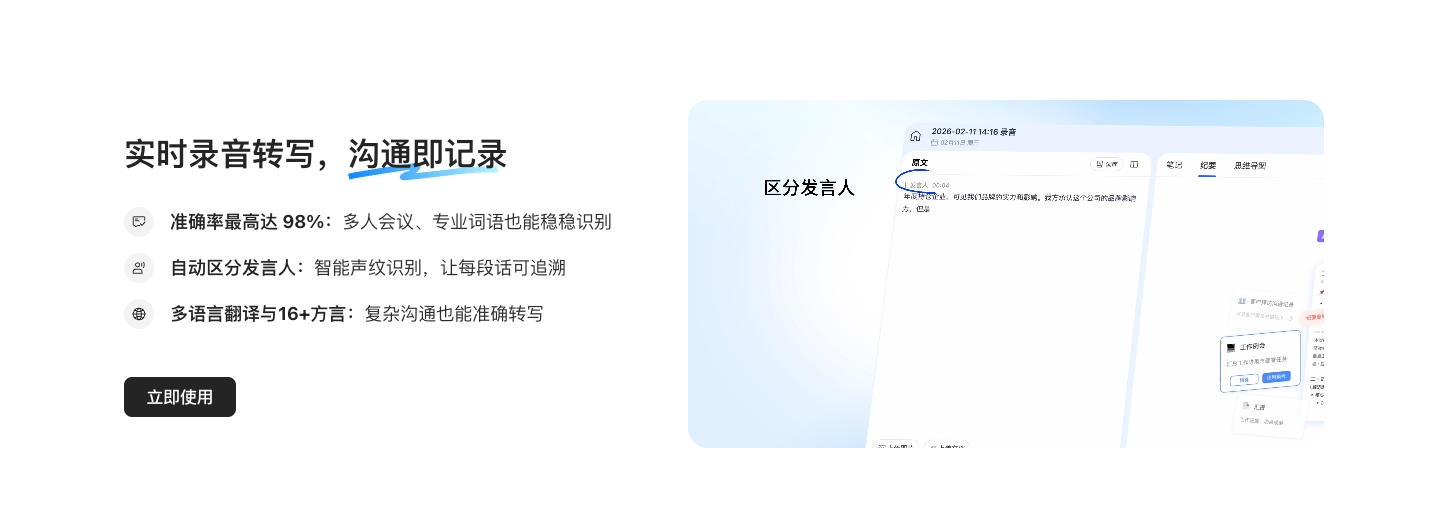 第二笔,【投入几乎为0的错漏修正时间】→【产出98.5%的转写准确率,比行业平均85%高出十三个百分点】→【实际场景收益太香了,我们开董事会,原来要专门安排行政专人记录,会后还要改两三个小时,现在用听脑AI转完基本不用大改,之前我们公司创始人就说,董事会纪要以前要专人记录,现在AI全程兜底,准确率还更高。而且会议里多人发言,听脑AI能自动分好角色,谁讲了什么一目了然,每次决策讨论完录音直接留存,以后追溯谁说了什么不再扯皮,这点对我们做管理的来说太刚需了】。