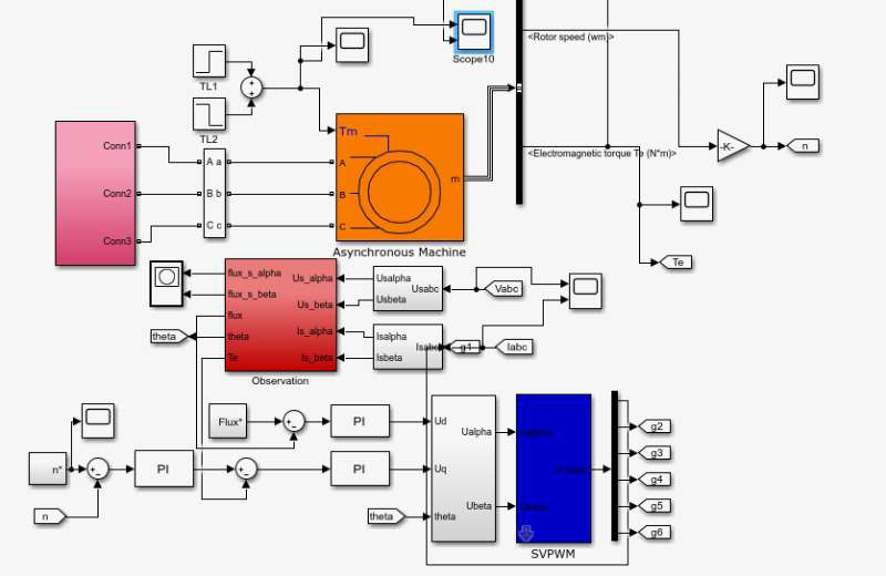 - 磁链观测:准确观测磁链对于精确的转矩控制至关重要。通常可以基于电机的数学模型,通过测量的电压和电流信号来估算磁链。例如采用电压模型法,根据电机的定子电压、电流和转速等信息,计算出磁链的大小和位置。