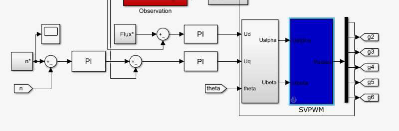 上述代码中,通过不断计算转速偏差,并利用PI控制器进行调节,更新模拟的电机转速。转矩环和磁链环的PI控制原理类似,只是控制的对象不同。