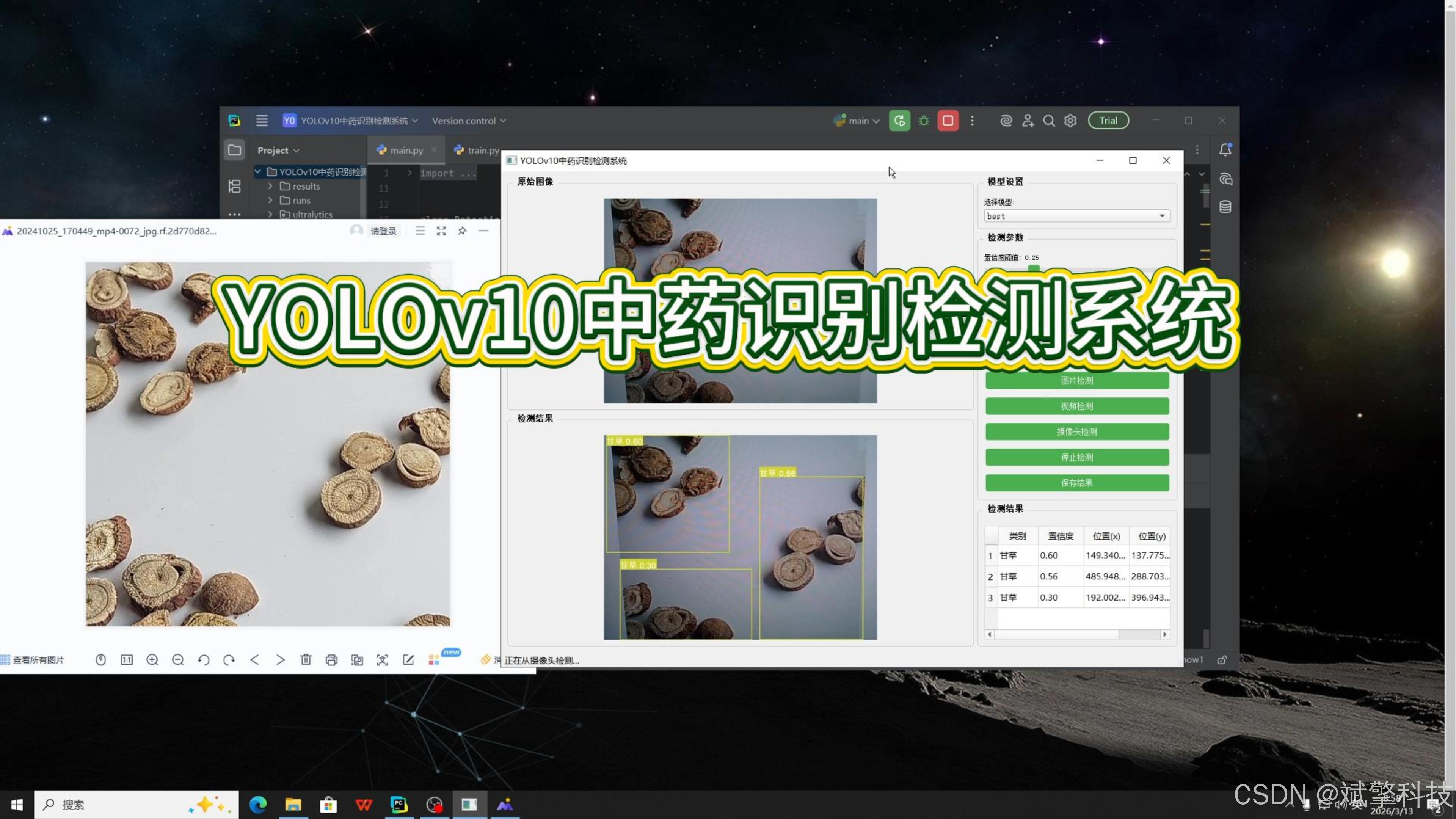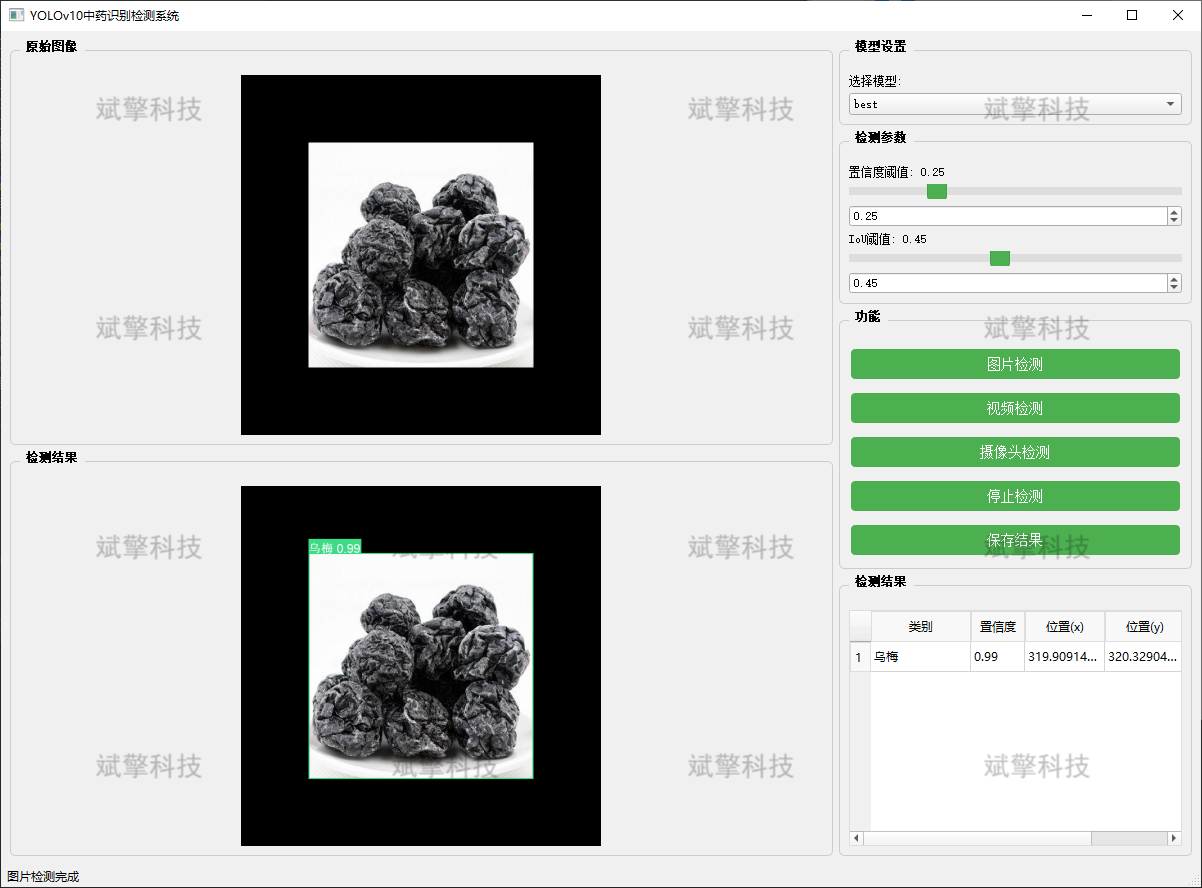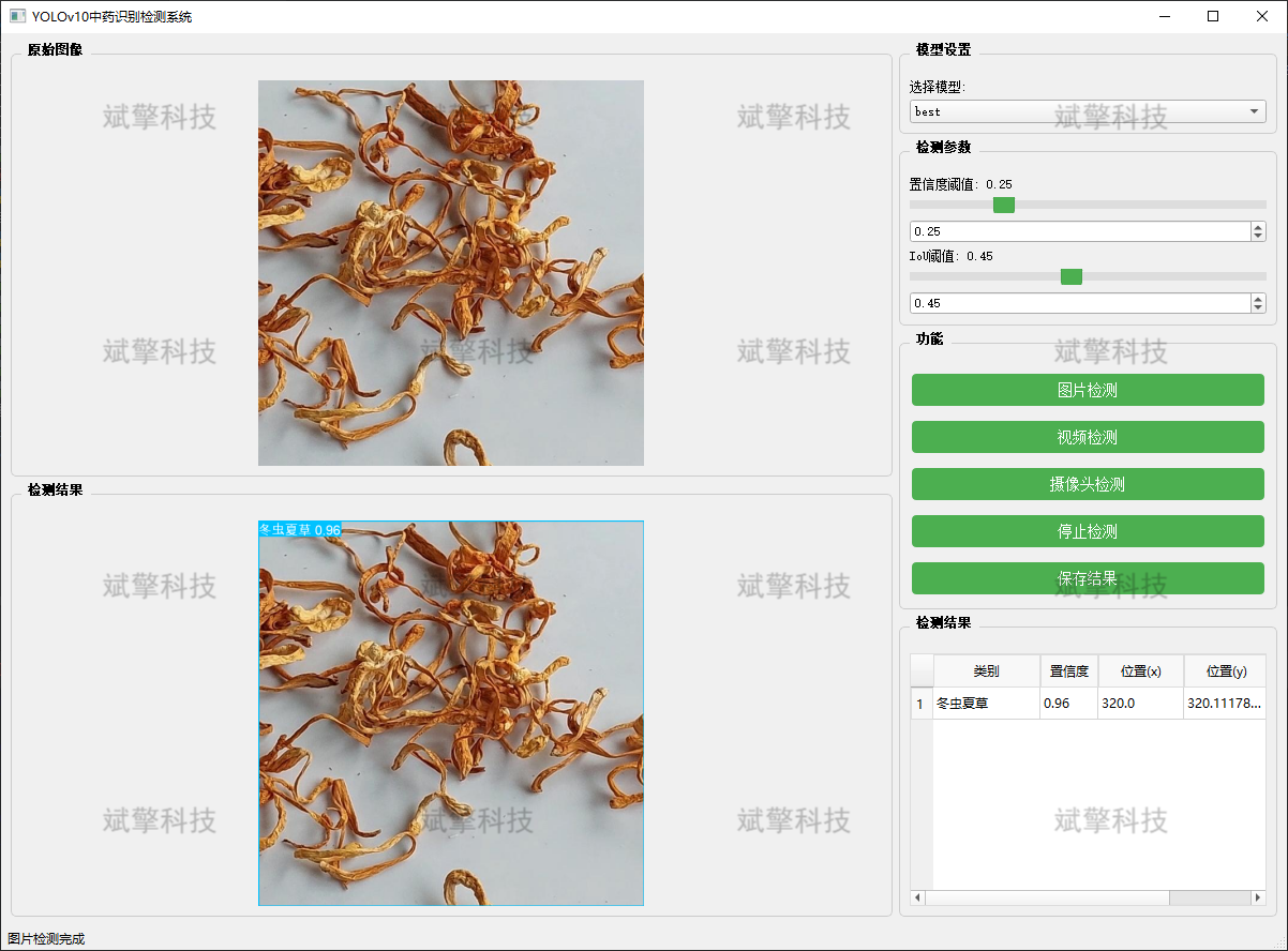 随着人工智能与中医药现代化的深度融合,基于深度学习的计算机视觉技术为中药材的自动化鉴别与分类提供了全新的解决方案。本系统基于最新的YOLOv10目标检测算法,针对45种常见中药材(如白茯苓、白芍、白术、人参、天麻、川贝母等)的视觉特征,开发了一套高精度的智能检测识别系统。系统支持图像、视频以及实时摄像头三种检测模式,能够对采集的药材图像进行实时、准确的定位与分类。该研究旨在解决传统人工鉴别效率低、主观性强的问题,为中药材流通监管、智能药房及药材种植管理提供高效、标准化的技术支撑。