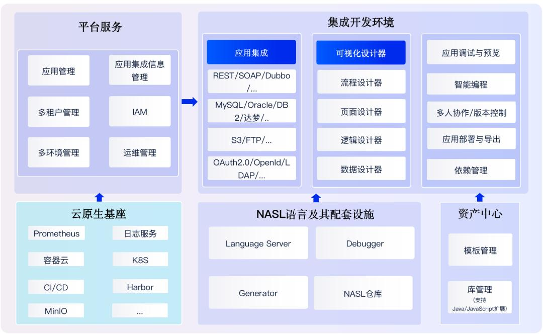- 第四层,集成与连接器层。API管理、第三方系统对接。你的低代码应用,可以和SAP、用友、金蝶无缝集成。