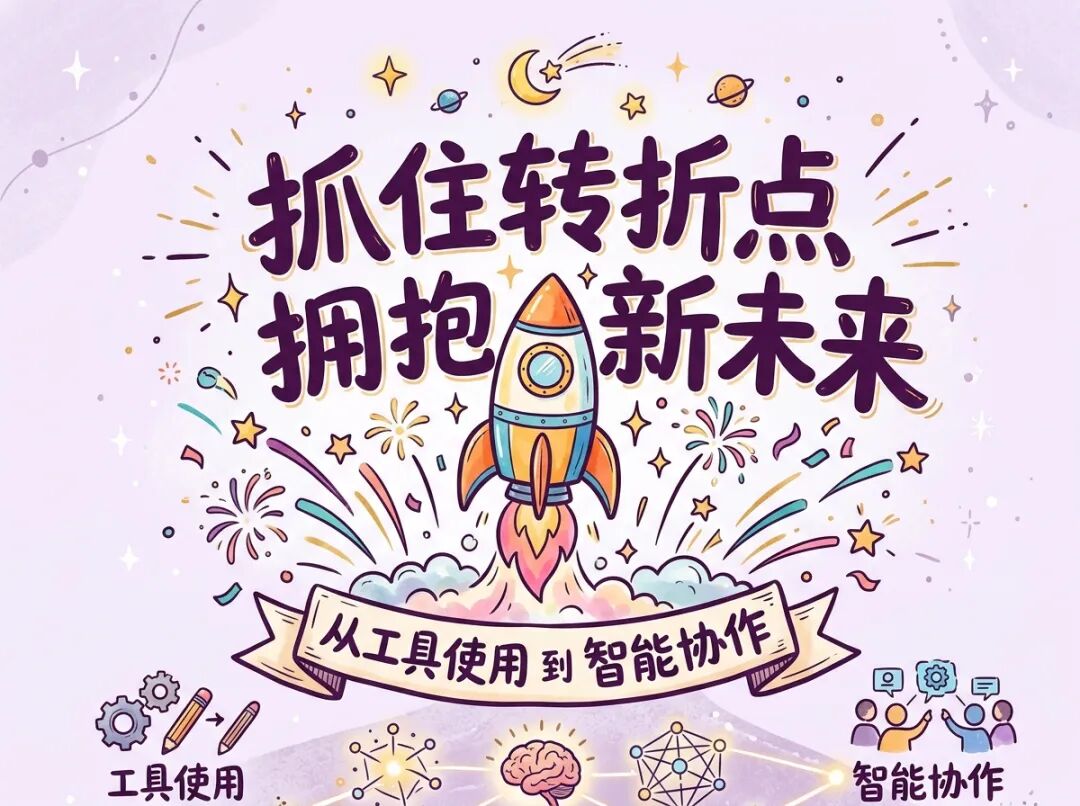 这是一场深刻的变革——我们正处在一个从"工具使用"到"智能协作"的历史性转折点。今天的这篇文章,就是帮助大家抓住这个转折点,让AI成为你工作中的得力助手,而不是未来的竞争对手。