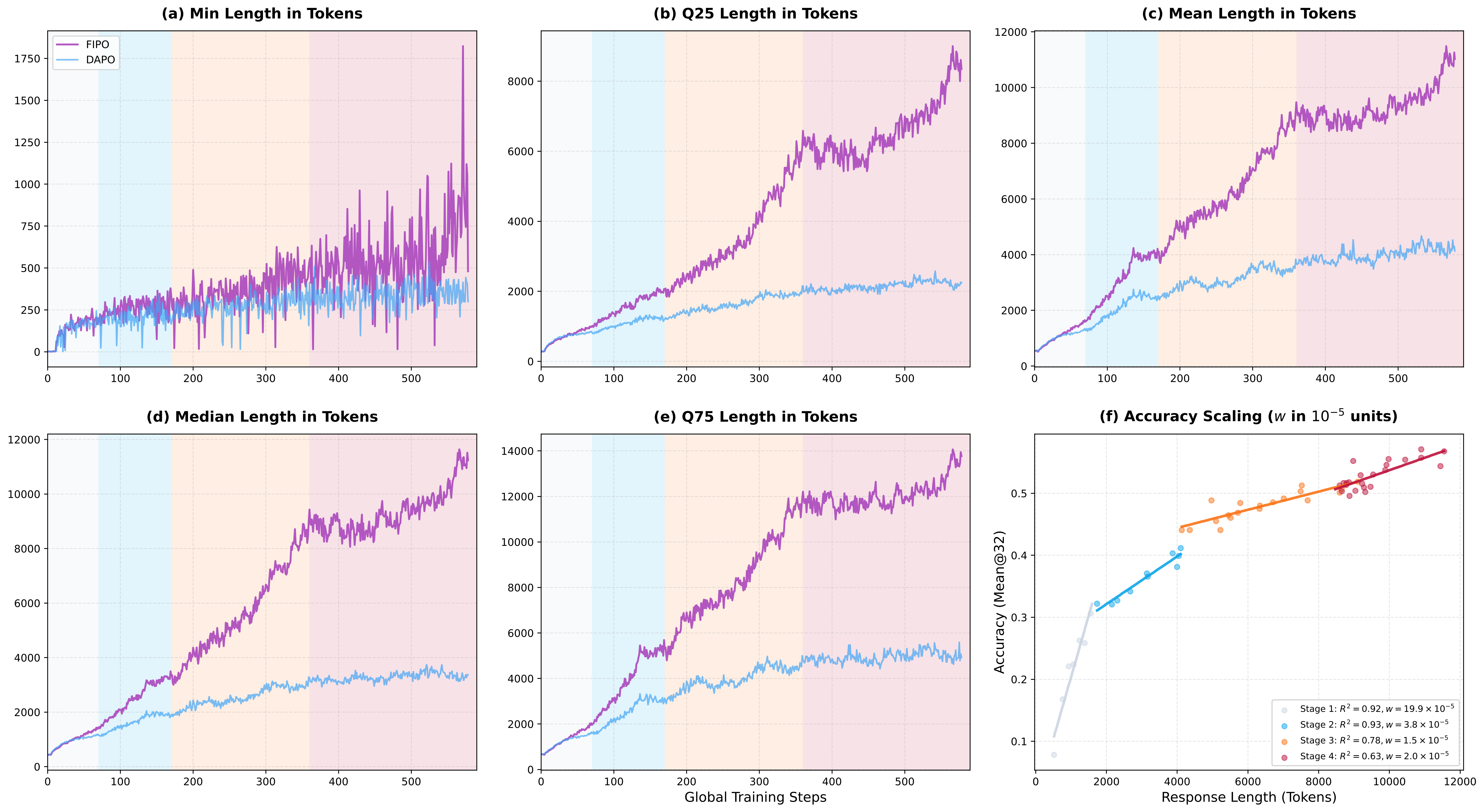 实验表明,基于 Qwen2.5-32B,FIPO 成功将平均思维链(CoT)长度从约 4,000 扩展至 10,000 token 以上。路子走对了,模型确实写得越长、准头越高。