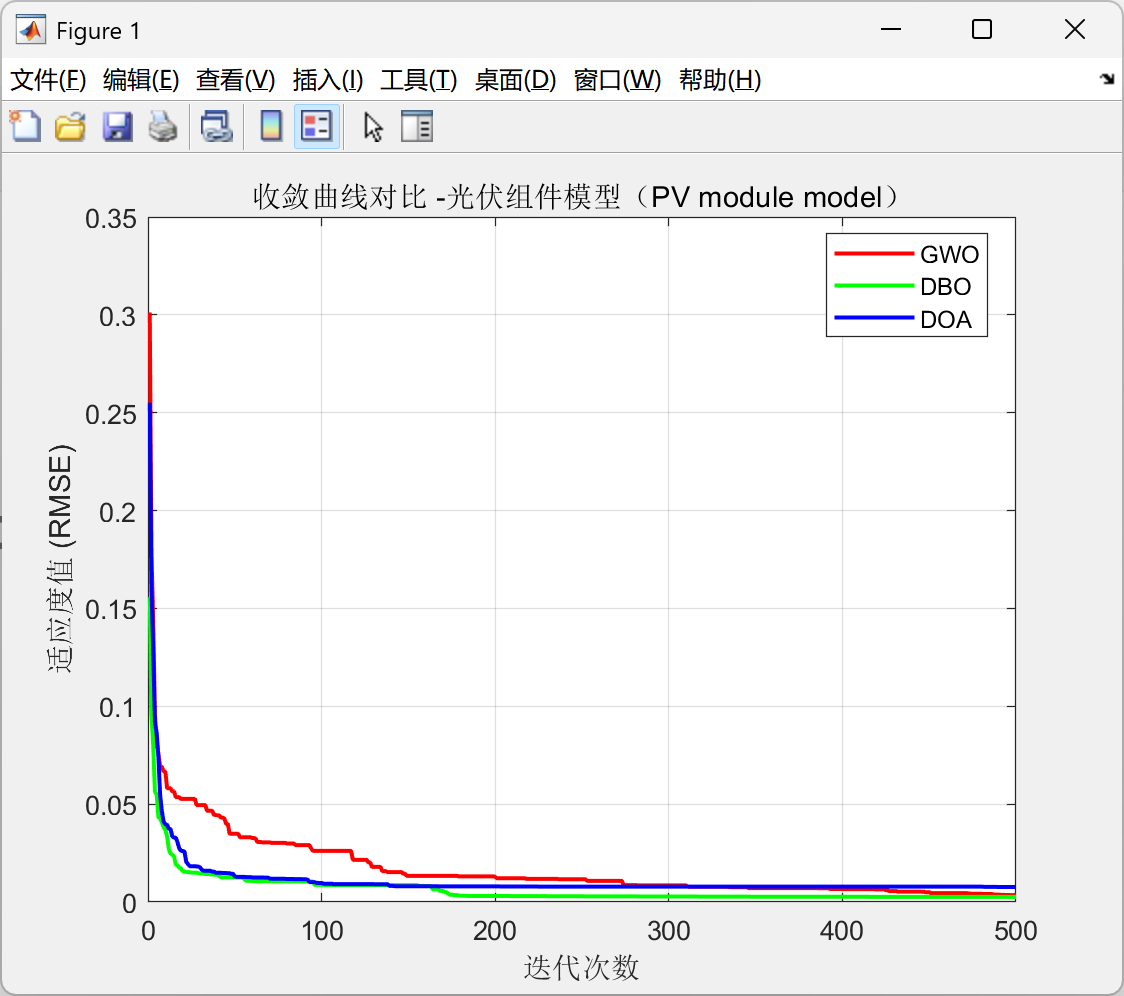 基于 GWO、DBO、DOA 的光伏电池参数辨识模型研究