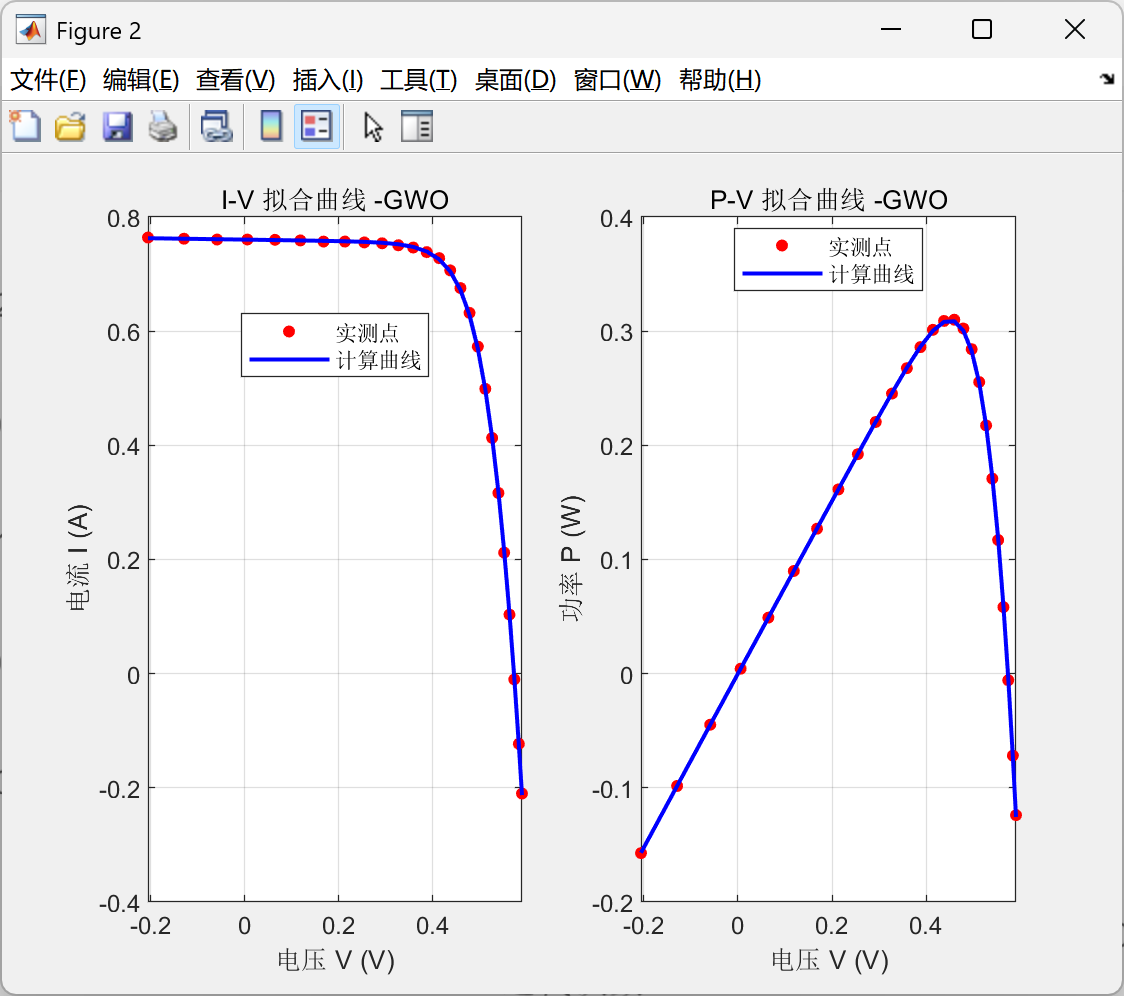 本文所有实验在统一的计算机环境下运行,保证实验条件公平一致。实验所用实测电流电压数据来自标准测试数据集,数据包含多个电压电流采样点,能够完整覆盖光伏器件从短路到开路的全范围电气特性,为参数辨识提供可靠的真值依据。