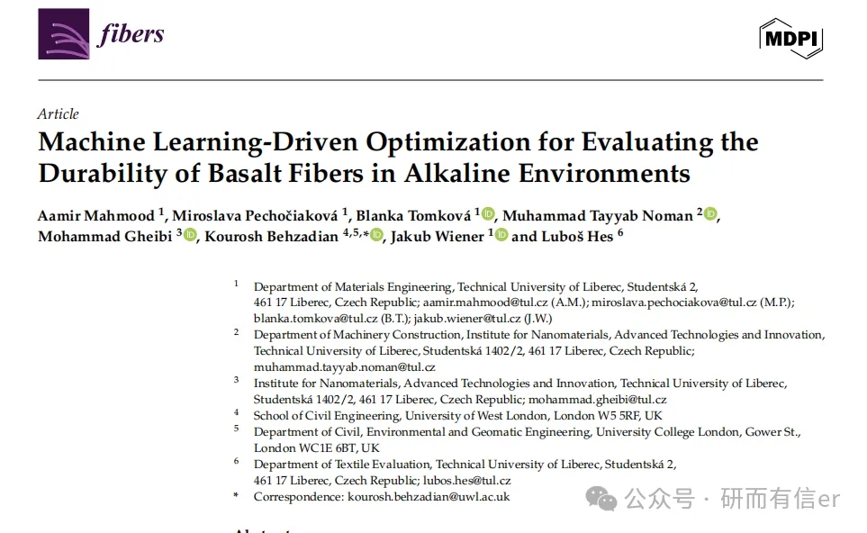 这项研究不仅为玄武岩纤维在碱性环境中的耐久性评估提供了系统的实验数据,也展示了机器学习在材料科学中的强大潜力。如果你也在从事纤维增强复合材料、碱激发材料或可持续建筑材料的研究,这篇文章的思路和方法值得借鉴。