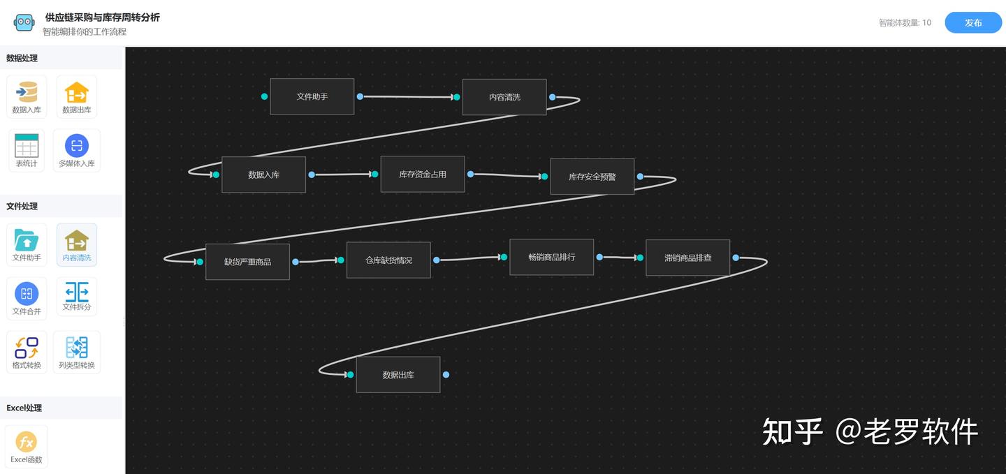 接着我们挂两个智能体节点,文件合并 和 内容清洗,如图:
