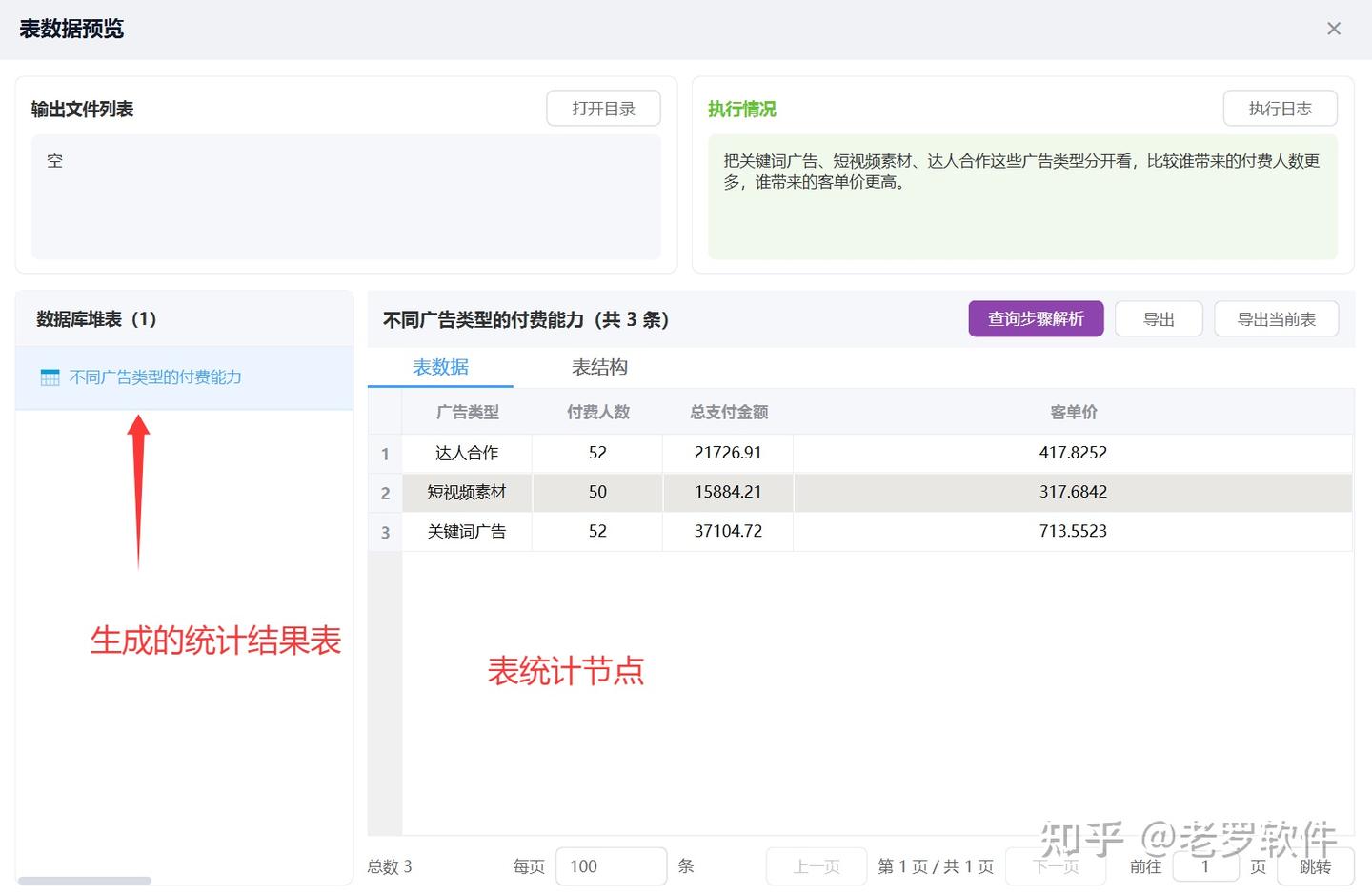 对于表统计,我们还可以回溯您的提示词,经过AI分析的具体步骤,如下案例: