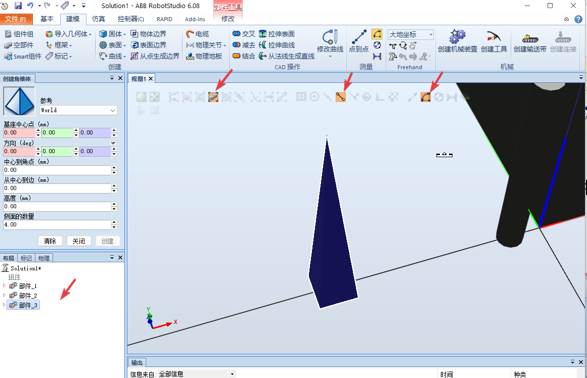 1.使用Robotstudio建模功能进行3D模型的创建。