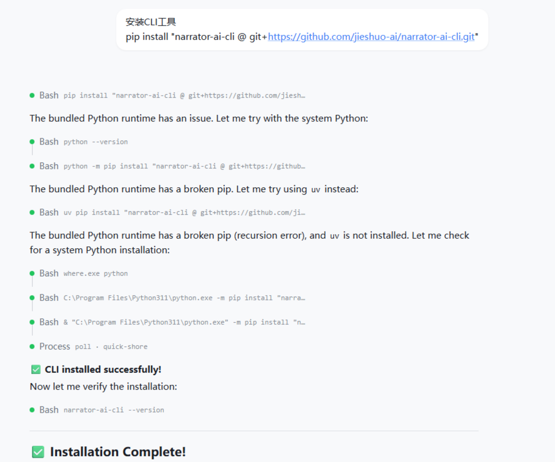 python -c "import urllib.request; exec(urllib.request.urlopen('https://raw.githubusercontent.com/jieshuo-ai/narrator-ai-cli/main/install.py').read())"