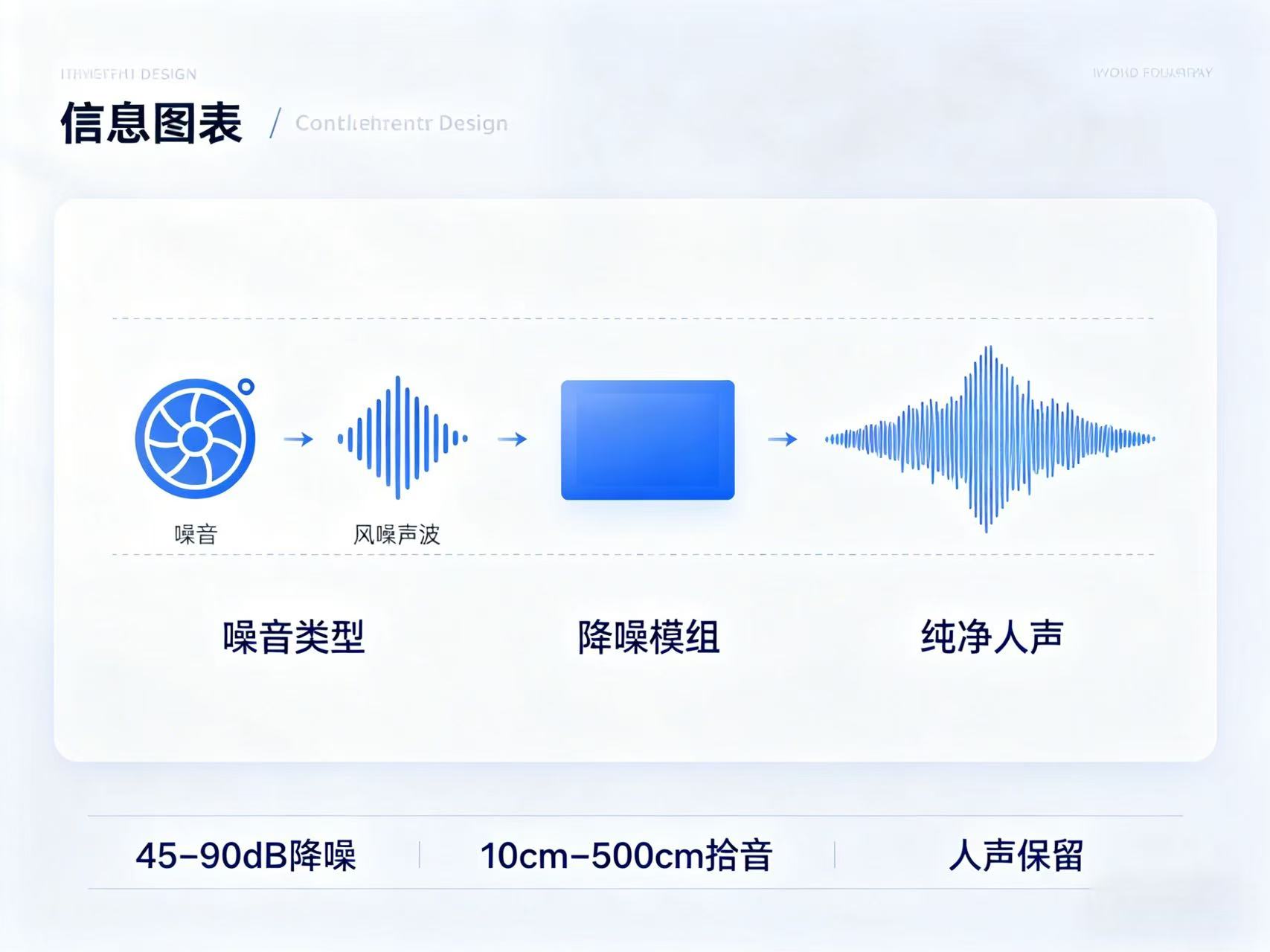 - 智能压制风扇、空调、敲击、鸣笛、风噪、设备振动等广谱干扰噪声