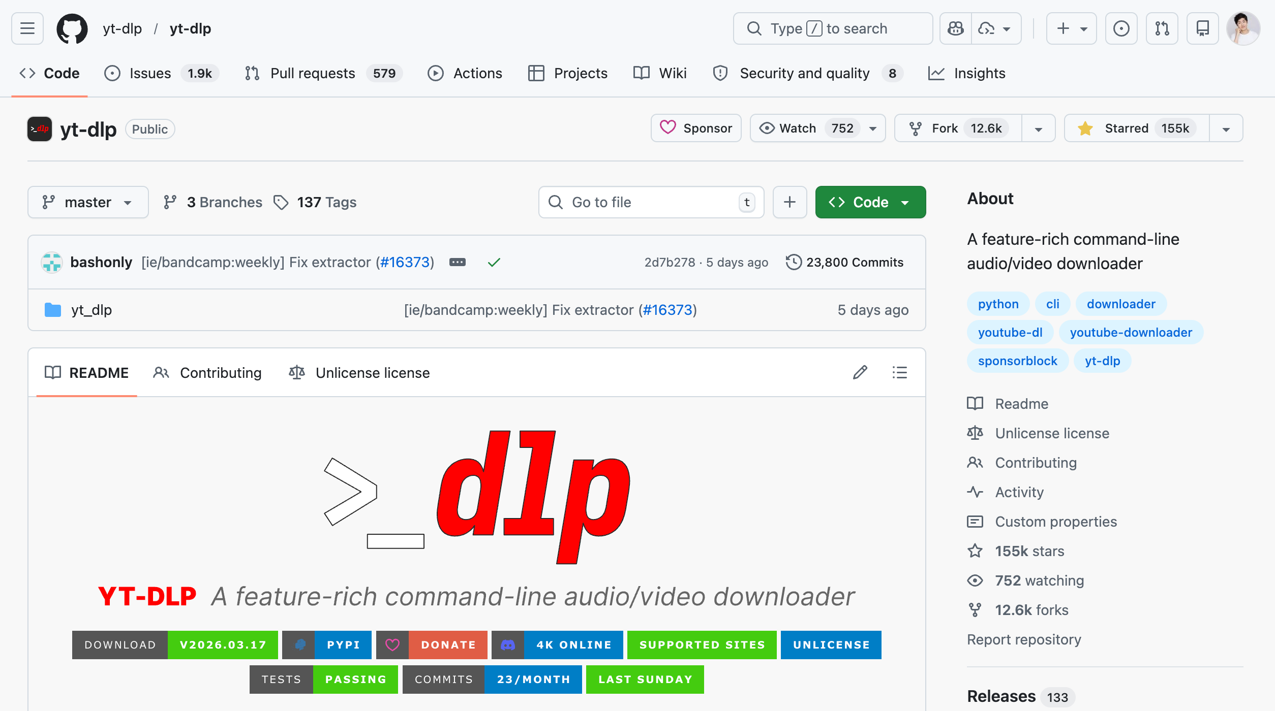 于是有个天才开源了 yt-dlp 这个神级视频下载工具,支持 上千个 网站,包括 YouTube、B 站、TikTok、Twitter 等等,你能想到的基本都有!