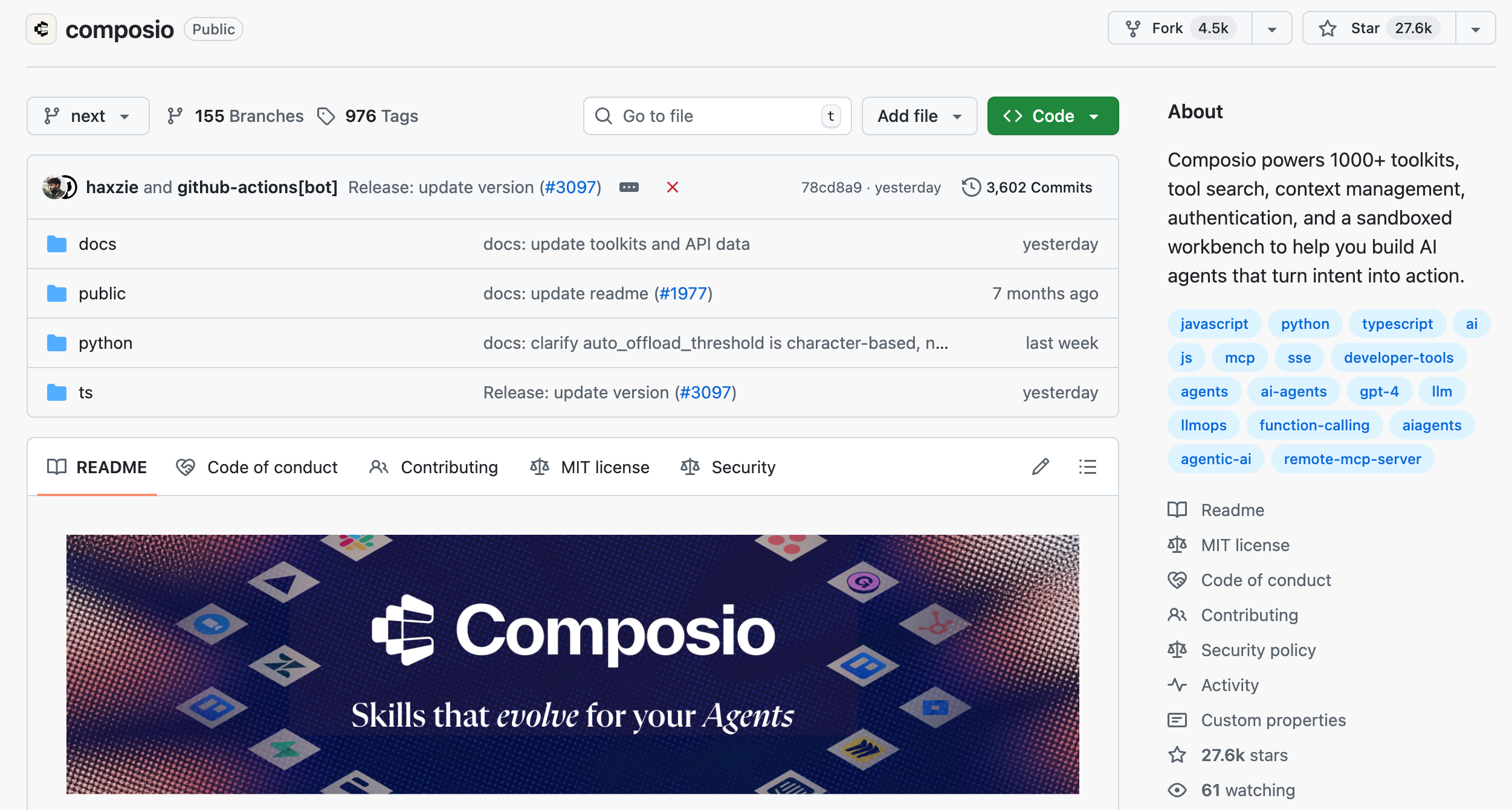 Composio 就是帮 AI 搞定这些脏活累活的。它预先集成了 1000+ 外部服务,帮你处理好 OAuth 认证、API 调用、错误重试这些细节。