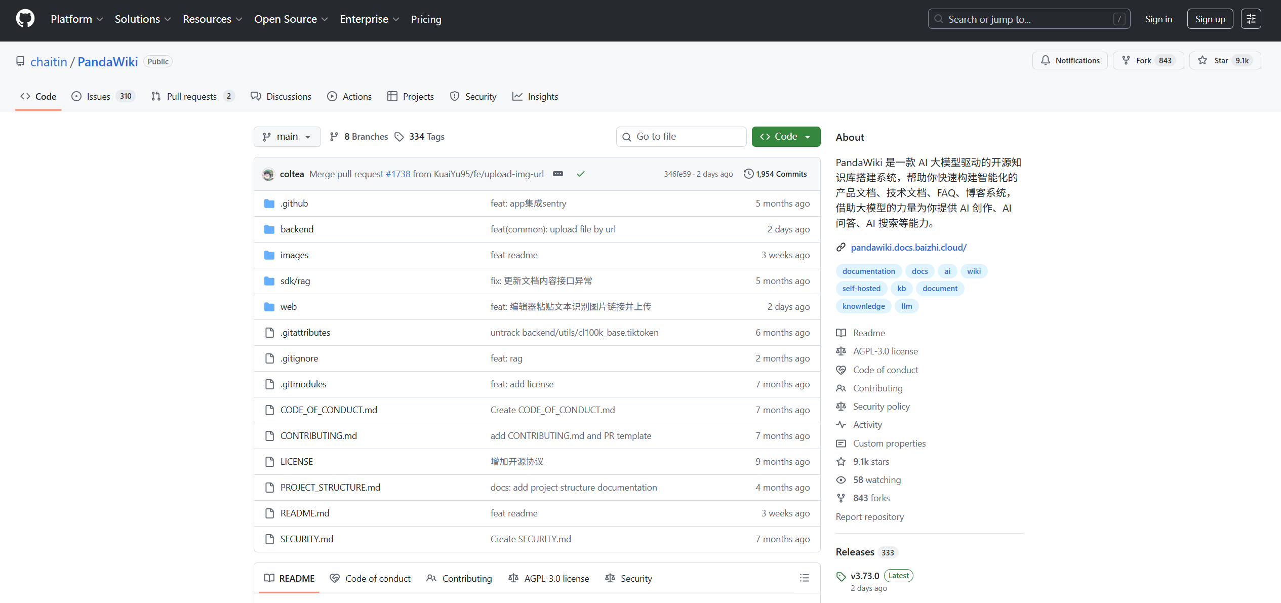 基于AGPL‑3.0开源协议,采用前后端分离架构,支持Docker快速部署、内网私有化运行、多模型接入(在线大模型与本地模型),核心能力覆盖文档编辑、智能检索、AI问答、权限管控、多渠道集成五大模块。