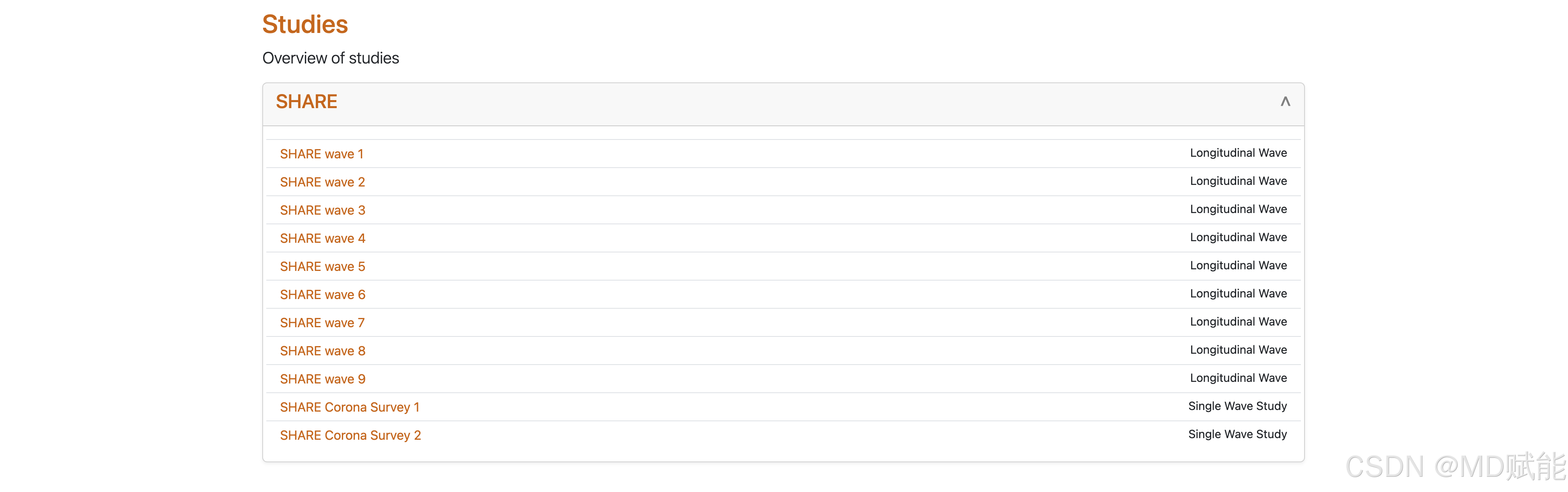 SHARE (Survey of Health, Ageing and Retirement in Europe,欧洲健康、养老与退休调查)由欧洲健康、养老与退休调查欧洲研究基础设施联盟(SHARE-ERIC)负责协调和管理,是欧盟重点支持的跨国研究基础设施之一,旨在系统记录欧洲人口老龄化进程中的健康变化、经济行为和社会关系变迁。