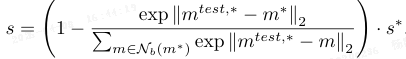 通过邻居 m* ∈ K^t_n 进行加权,得到更鲁棒的得分: