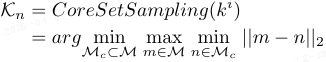 随后,适配后的特征 k^i 被用于构建知识库 K_n。为降低存储,采用 coreset 采样:
