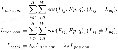 其中 F_ij 为位置 (i, j) 处的特征 embedding,L_ij 为对应标签,λ_α = λ_β = 1。
