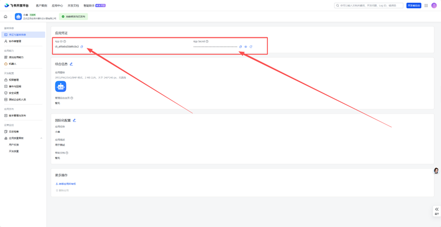 ⚠️ 安全提示:App Secret 相当于应用的密码,请妥善保管,不要在公开场合分享,也不要将其硬编码在客户端代码中。