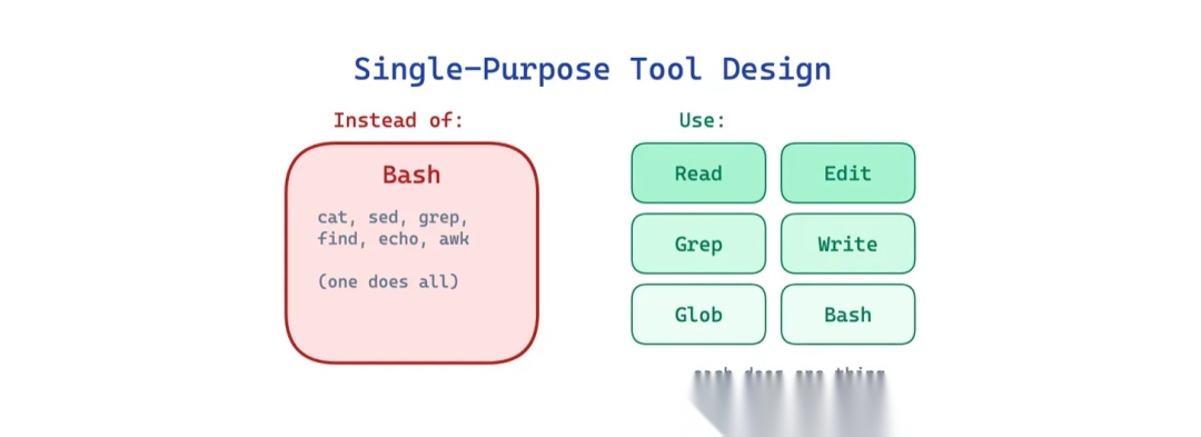 权衡点:灵活性会受限。专用工具不可能覆盖所有情况,所以还是需要保留通用 shell 作为兜底。