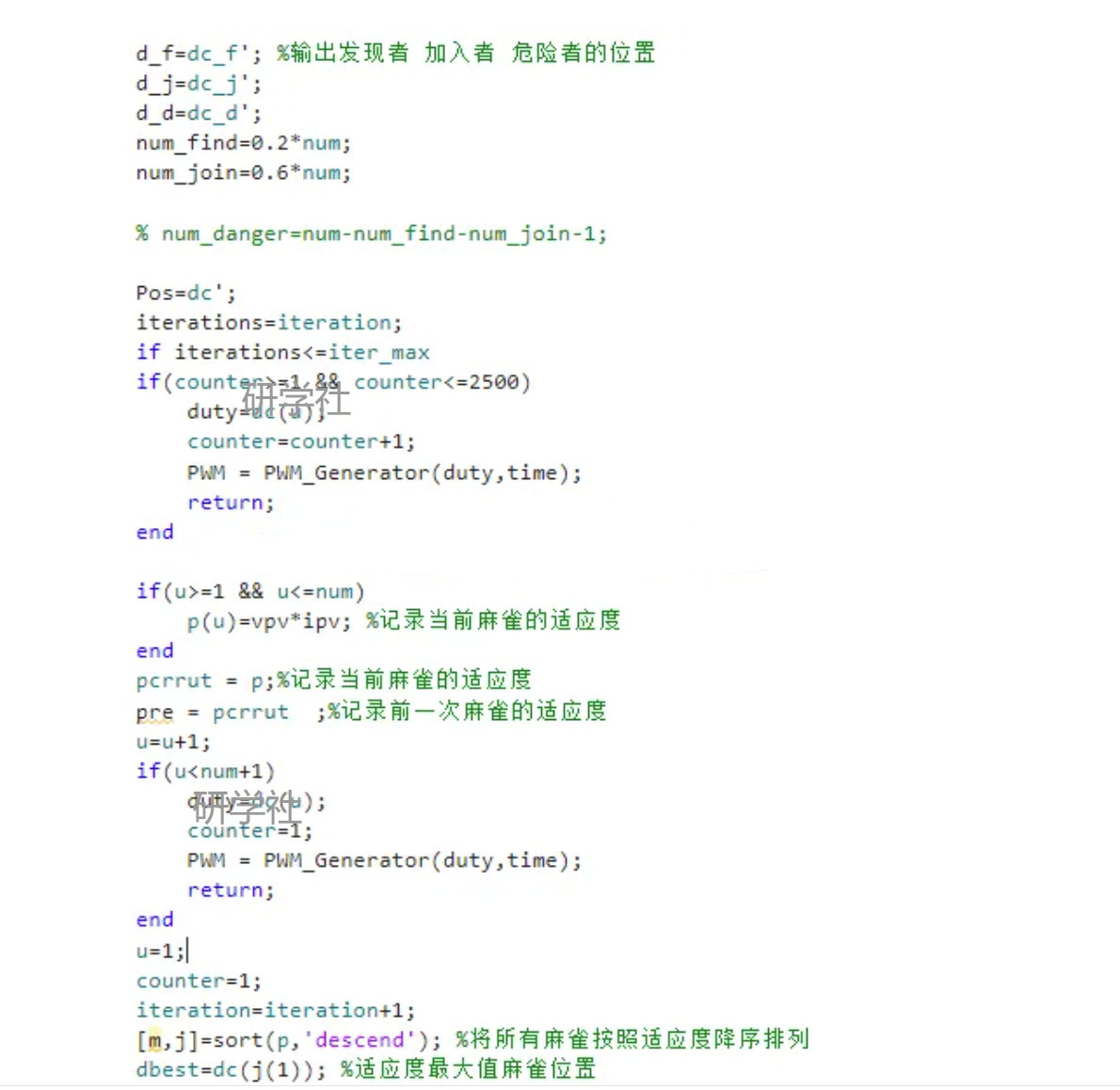 • 适应度函数:f(D)=Ppv(D)(D为DC-DC转换器占空比)。