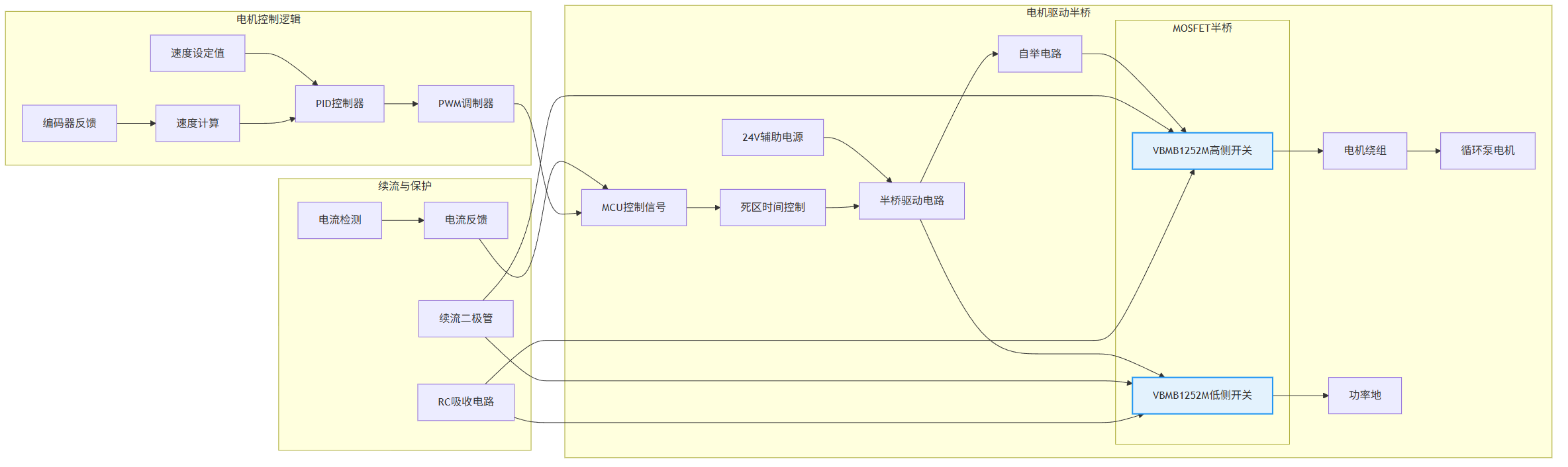 循环泵与风机确保热均匀性,为感性负载,存在反电动势,需要适当的电压裕量和续流保护。