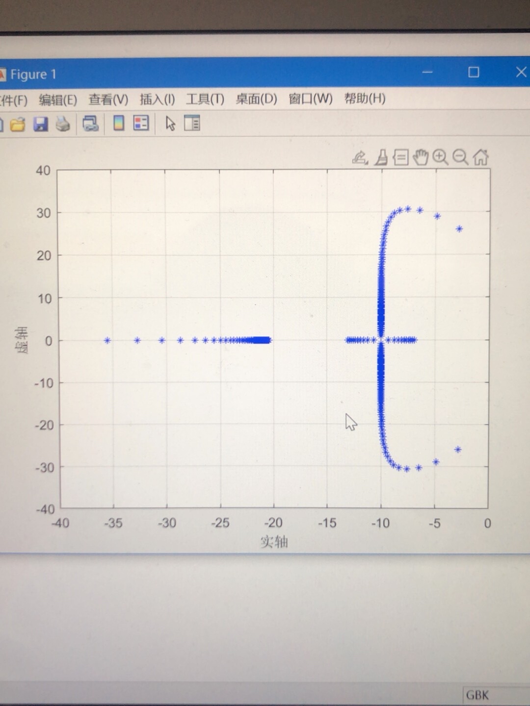 - 根轨迹生成:求解特征方程的根,提取根的实部(rel)与虚部(img),以蓝色星号在复平面绘制根的位置,形成根轨迹图。
