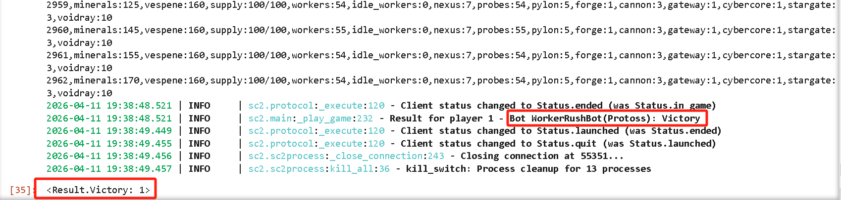 目前Agent的操作只有一个,就是生成woker去攻击虫族,肯定会输。