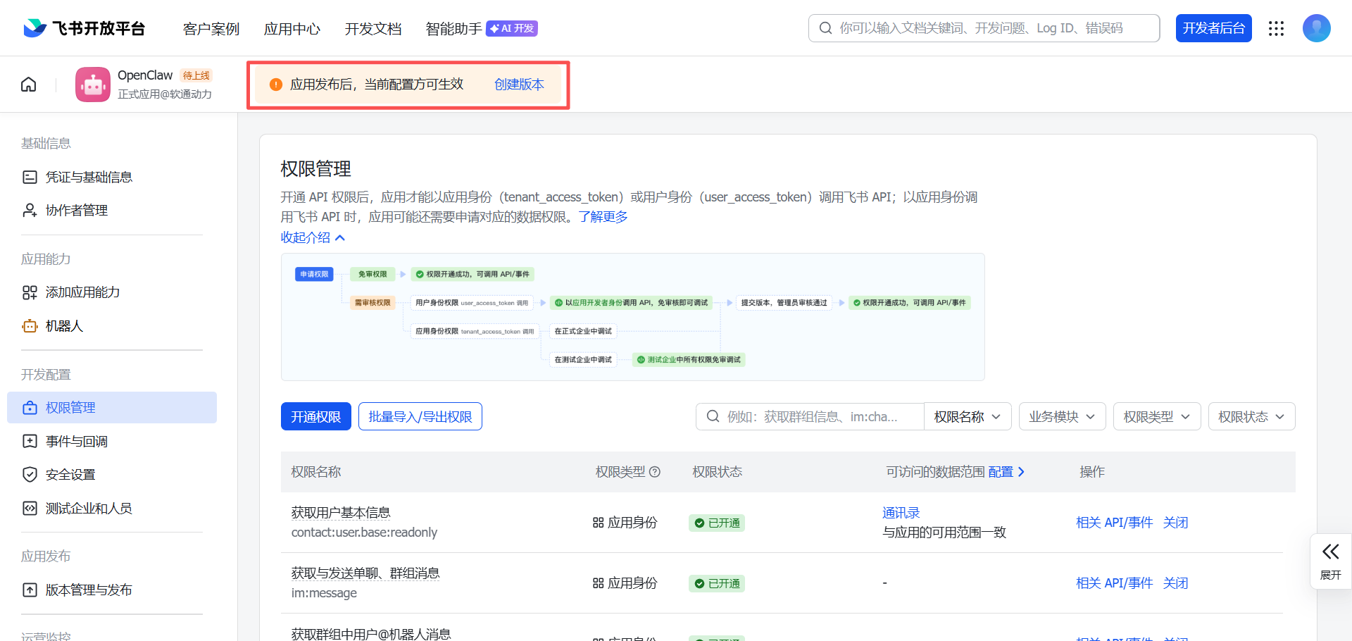 im:message 消息权限,这边默认全部勾选