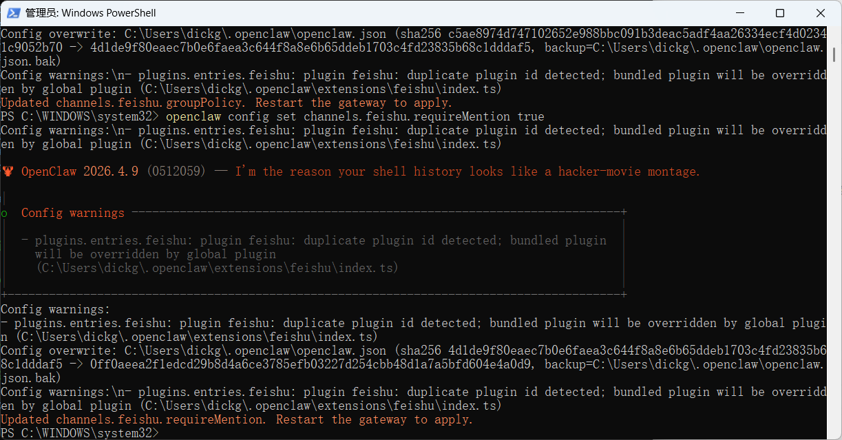 openclaw config set channels.feishu.requireMention true