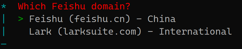 接下来,选择飞书域名,有国内版和国际版,现在国内版就行。