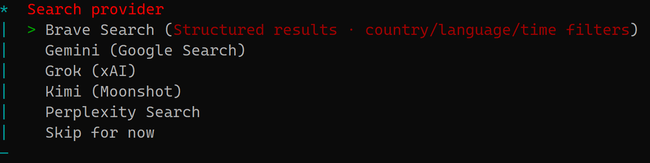 建议:选 Skip for now (推荐) 或 Kimi,这里我选 Skip for now